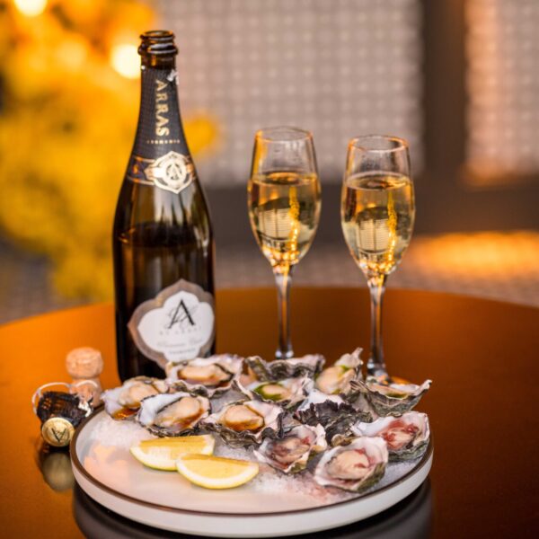 For $140, share a bottle of the exquisite House of Arras sparkling wine, perfectly paired with a dozen fresh, Tasmanian oysters – the ultimate treat for your rooftop experience.